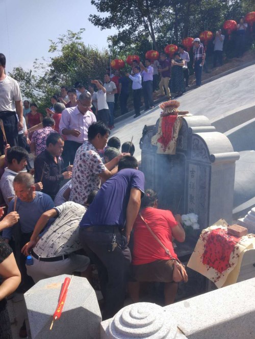 天高云淡,秋风送爽,金桂飘香。吉甫公墓在广大裔孙的共同努力下,重修工程已基本完成。为了奉先思孝、尊祖敬宗、慎终追远,缅怀先祖功德,凝聚族人,弘扬三让美德和开拓进取精神,振兴中华民族。今天(2018年9月13日)迎来了迁墓二十周年的公祭庆典。上午,来自马来西亚的武衷宗长和广西贺州、贵州贵阳、广东深圳、阳春、梅州、蕉岭、大埔、江西寻乌、瑞金、浙江丽水、福建各地和永定的吉甫裔孙上千人,他们有些甚至不远万里,都怀着虔誠的心,来到福建省永定区湖雷镇石坑前头岗吉甫公墓前,献上三牲鲜果,香茶美酒,香纸烛炮,缅怀宗功,感恩祖德,尽力奉款共襄完善祖业。十时,祭祀仪式开始,由塘厦泳龙宗长和长煊会长主持祭祀,整个仪式庄重有序。