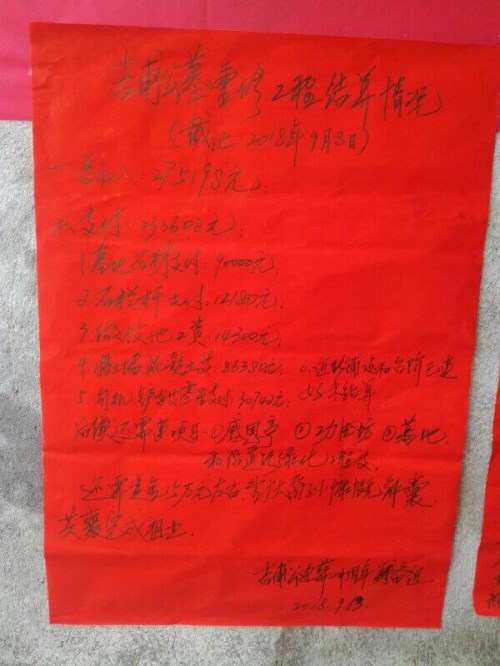 3.宣传和发动奉款。为了工程顺利开展,为此,我们吁请公传各地各世系裔孙,商贾精英、贤达老板和广大有识之士,广泛宣传,并为了祖宗事业而鼎力奉助,共襄完善祖坟之善举。据筹备组决定,吉甫公众裔孙男女均奉款10元,我们坚信有公传众裔孙的虔诚敬祖之心和鼎力奉助,定能集腋成裘,并将秉着专款专用,节约原则早日把各项工程完成。