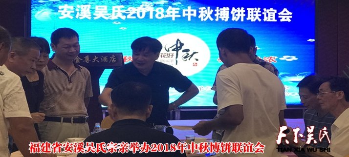 天下吴氏讯(特约采编 吴建法)2018年9月23日,时值秋分,恰逢第一个中国农民丰收节,安溪吴文化研究会(安溪县吴氏宗亲总会)在安溪金尊大酒店举行“安溪吴氏宗亲2018年中秋博饼联谊会”。