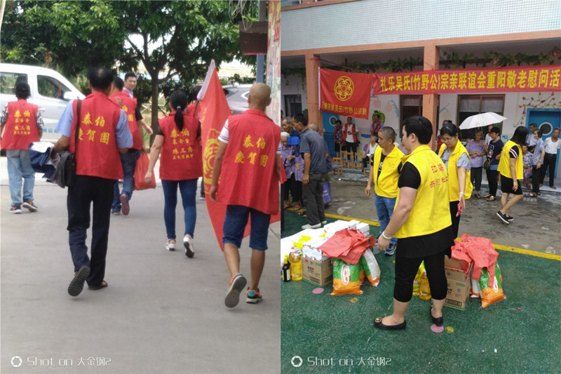 广东江门礼乐镇和大鳌镇两地同时开展的“中秋·重阳”双节慰问吴氏贫困宗亲及吴氏老人活动,是由江门礼乐吴氏(竹野公)宗亲联谊会、广东珠三角吴氏宗亲总会、香港泰伯基金会、大鳌吴氏宗亲联谊会联合主办,由江门礼乐吴氏(竹野公)宗亲联谊会、大鳌吴氏宗亲联谊会承办和具体组织实施;协办单位有:江门市江海区乐翔社会工作服务社、中山吴氏(竹野公)联谊会。