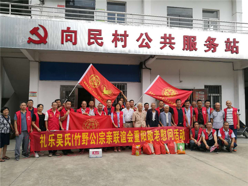 参与这次双节活动的单位有:江门礼乐吴氏(竹野公)宗亲联谊会、广东珠三角吴氏宗亲总会、香港泰伯基金会、大鳌吴氏宗亲联谊会、江门市江海区乐翔社会工作服务社、中山吴氏(竹野公)联谊会、珠三角(肇庆)吳氏宗亲会,珠三角(新兴)吳氏宗亲会,广东顺德水腾吴氏至德堂宗亲联谊会、广东吳氏志愿团肇庆(要明)志愿队等等,这次活动得到了江门礼乐镇政府的支持并派出五名志愿者参与,共同组织这次中秋·重阳双节慰问活动。