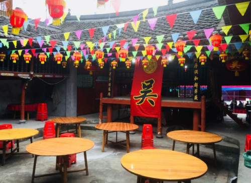进入碗窖美祖宇,感到宗亲不愧余力,祖宇四周里生、粗字光线明亮、彩旗飘飘。苍南县文物保护单位,碗窑美吴氏百年宗祠是温州地区仅存不多的古建筑、祖宇座落给来者一个心情高兴和仰望心理,看到对联对族人鼓舞,看到丁银慷慨乐资芳名,族人兴旺发达,理解到族人热心公益事业,好让祖祖辈辈先人也得到一个宽裕享受。