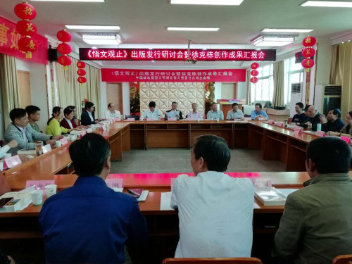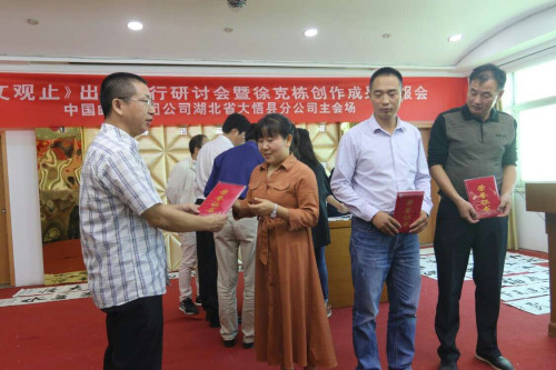 孝感市作协主要领导刘碧峰、方东明,大悟县党政领导陈义万、付波、何烨明,以及编创团队的专家、学者50多人出了会议。市、县领导在研讨会上分别就《悟文观止》从编辑到出版发行进行了高度点评,提出文艺创作要牢记使命,不忘初心,注重政治纪律、维护党的政权,在讴歌新时代的同时,传承红色基因,营造乡土文学,建设书香大悟,延续楚文化和弘扬大别山的民俗根脉。