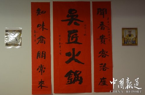 中国著名书法家禾千大师“空降”重庆为其火锅店招牌题写“吴匠火锅”墨宝,及“知味高朋常来 闻香贵客落座”、“店小名声大 檐低信誉高”脍炙人口的广告语。
