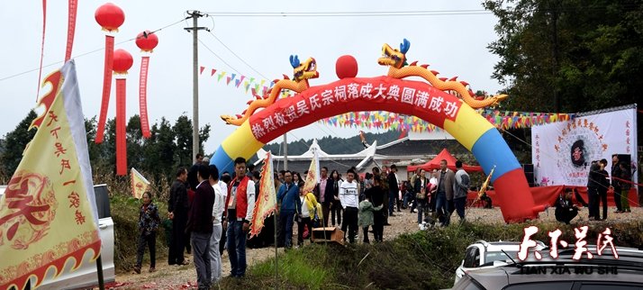 据介绍,该祠堂由当地吴氏宗亲自发捐款筹建而成,四面环山,风景秀丽,在活动现场,锣鼓喧天,鞭炮齐鸣,数十個空飘条幅为吴氏宗祠锦上添花。聚集了来自全国各地开阳本地吴氏宗亲近800人。