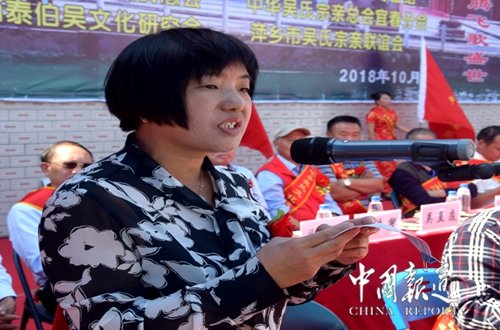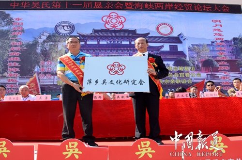 中国报道讯(吴蜀丰江西萍乡报道)由中华吴氏宗亲总会主办,江西萍乡市吴文化研究会筹备组,泰伯企业商会筹备组承办,福建省海峡吴氏企业总会,中华吴氏宗亲总会宜春分会,赣西泰伯文化研究会,萍乡市吴氏宗亲联谊会协办的中华吴氏第十一届恳亲大会暨海峡两岸经贸论坛今日,(2018年10月5日)在江西萍乡芦溪县芦溪镇东阳村吴氏宗祠成功举办。