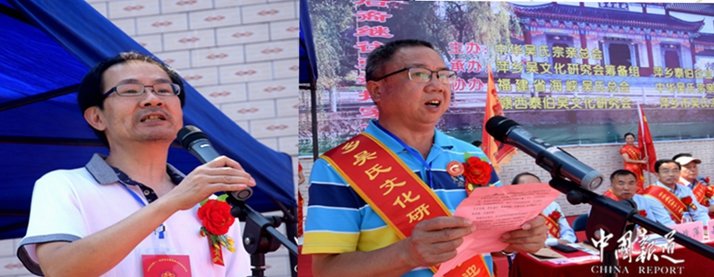 由中华吴氏宗亲总会秘书长吴谨程主持本次盛会,大会开始全体起立,奏中华人民共和国国歌,奏中华吴氏会歌及鸣炮,分别介绍了出席本次大会的领导和贵宾及主席台就座,中华吴氏宗亲总会分別向萍乡吴文化研究会授牌,赣西泰伯吴文化研究会向萍乡分会授牌,萍乡吴文化研究会、萍乡泰伯企业商会会长吴勇致欢迎词,芦溪县政协副主席、县工商联主席刘向红致贺辞并介芦溪县基本情况,海峡吴氏总会会长吴剑锋,中国光彩事业基金会,台湾两岸实业有限公司董事局主席,厦门市泉州商会高级顾问,《天下吴氏》网高级顾问,铂之爵主持学院荣誉院长吴序侬等代表先后致辞发言。