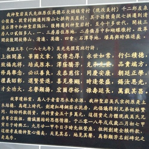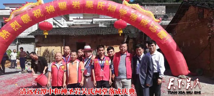 天下吴氏讯(特约采编吴文彬 ) 十月是收获的季节,今天,在这个喜庆丰收的大好日子里,广东清远石潭中和神圣岩吴氏也迎来了祠堂落成庆典,清远石潭中和神圣岩吴氏,原是英德吴氏千二郎分枝阳山七拱,七拱又再分枝到此地。今天祠堂庆典邀请了英德九龙镇河头楼仔金鸡等村的舞狮队和英德爱心团参加庆贺。