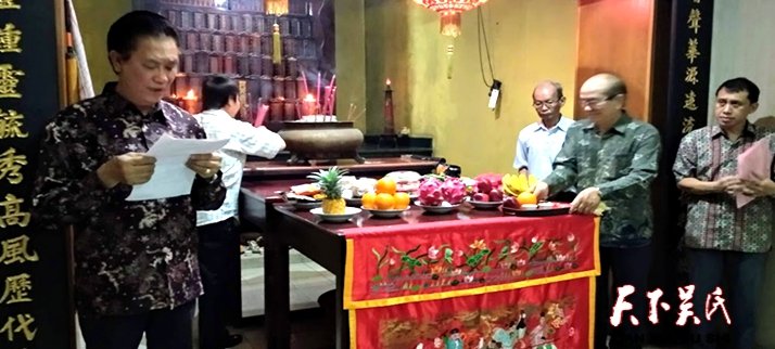 雅加达至德吴氏宗祠主席吴能彬博士,辅导主席吴明理,理事吴茂生,吴文生,吴锦华,吴敬昇,吴家和,吴泰昌,吴金华,吴生源,吴和秀,吴文生万隆吴氏宗祠代表等贵宾一起参加一年一度的秋季祭祖。