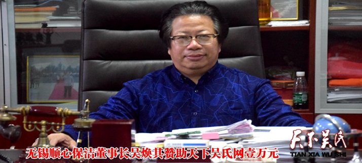无锡顺心保洁董事长吴焕其赞助天下吴氏网壹万元