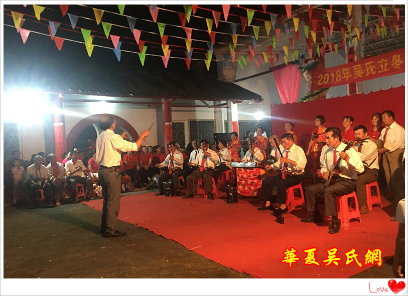 2018年11月6日下午3点,我与父母驱车从柳州桂柳高速公路前往老家南宁宾阳,参与第二天的立冬祭祖活动。当晚我们在祠堂里观看了吴家60多个村庄的文艺节目表演,祭祖晚会开始时呜放三尊特制的大鞕炮。而后燃放烟花半小时,进而拉开祭祖文艺晚会的序幕,晚会十分精彩,让人看得目不转晴。