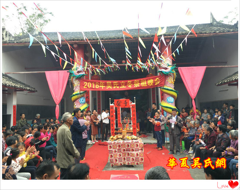 2018年11月7日是“立冬日”,是广西宾阳县吴氏一年一度的祭祖活动。祭祀先祖,是一项隆重的民俗活动。除夕、清明节、重阳节、中元节,是中国传统节日里祭祖的四大节日。古时,这种礼俗很盛。因各地礼俗的不同,祭祖形式也各异。 国人有慎终追远的传统,过年过节总不会忘记祭拜祖先。祭祖的同时,有的地方也祭祀天地神灵。供品主要有三牲饭菜、三茶五酒等;由族长或家长主祭,烧香,叩拜后,祈求五谷丰登,最后烧钱纸,俗称"送钱粮"。祭祖民俗相沿数千年,是具有深刻意义的一个古老习俗。