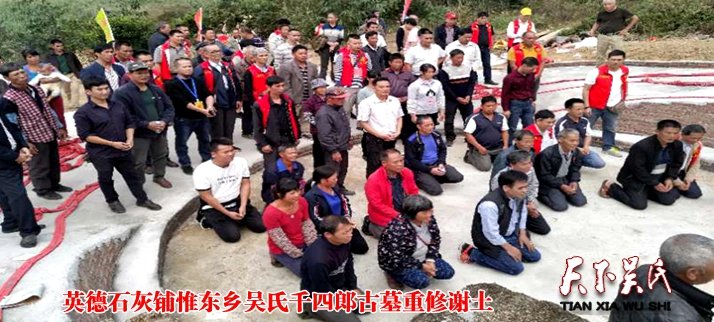 天下吴氏讯(特约采编吴文彬 )日前(11月7--农历九月三十日),吴氏千四郎238后裔集聚英德石灰铺惟东乡吴氏千四郎古墓举行重修谢土典礼仪式。