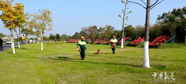 据介绍,全长42公里的赛道所有路面清洁卫生均由顺心保洁服务团队全面负责清理,记者在现场随处可见身着莹光色绿底印有顺心保洁工作服人员,他们骑着工具箱电动车,提着垃圾铲及扫帚,几乎是地毯式的留意巡捡垃圾,哪怕是掉在地面上的一片树叶子,一个烟头或纸屑都不放过……