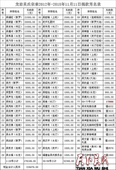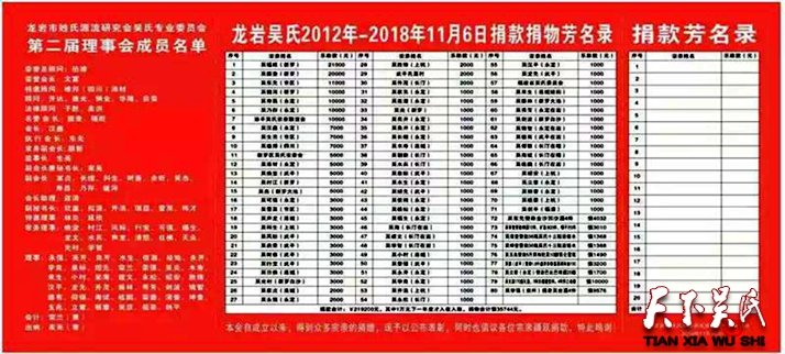 龙岩市吴氏委员会秘书长吴家亮作《章程》的简要说明并主持表决议程;朝新常务副会长宣读捐资名单。