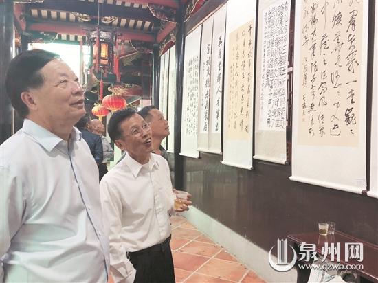 早报讯 (记者李菁 实习生吴汉阳 文/图)11日上午,泉州各界吴氏子弟代表齐聚市区东观西台吴氏大宗祠,参观《颂始祖,歌吴祠》诗书画展,本次诗书画展共计80幅书法、画作展出。