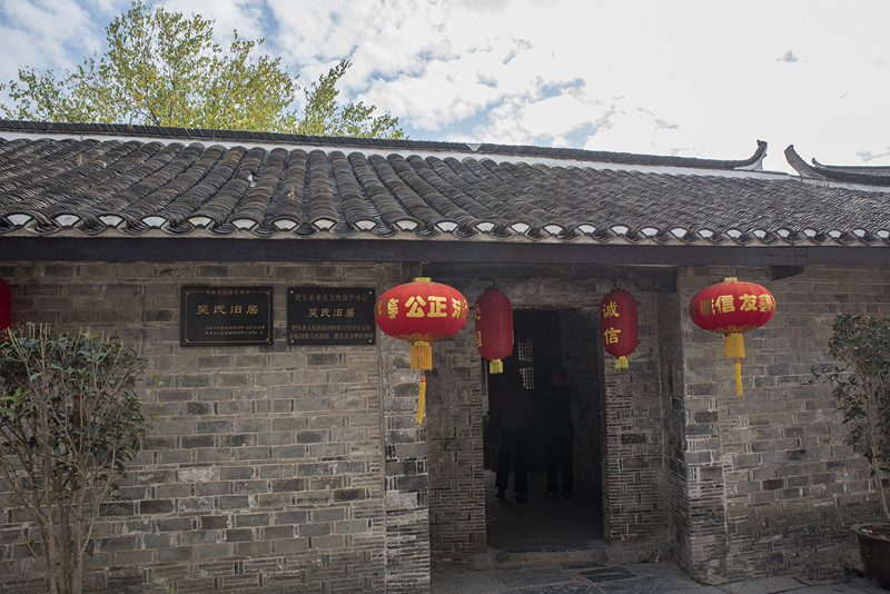 吴氏旧居是测绘专家吴忠性先生的旧居,青砖小瓦,典型的皖中民居建筑风格,旧居座南朝北,前后三进,正门呈北偏东,寓意“日出东方,紫气东来”,临街四间半正屋,后各带二间厢房,厢房之间为天井小院。吴忠性先生一生致力于中国的测绘事业,从事过军用地图制作、解放军测绘学院担任教授、撰写测绘论文70多篇,出版专业书籍多本,为中国的测绘事业做出来突出的贡献。