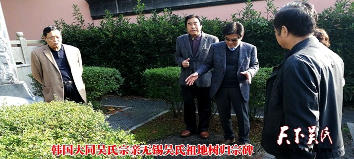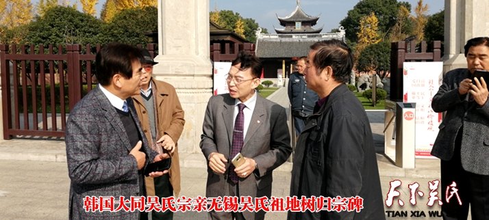 无锡吴氏祖地宗亲会会长吴仁山、秘书长吴乐一,泰伯墓守陵人华伯泉等负责人对韩国吴氏宗亲的到来表示热情欢迎和款待,并对韩国吴氏宗亲认祖归宗立归宗碑之举表示大加赞赏!