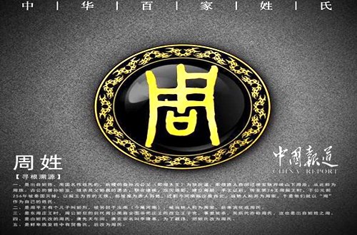 周姓在《百家姓》中排第5位,周姓是一个多民族、多源流的古老姓氏,主要源于姬姓,台湾土著族、瑶族、东乡族、彝族、布朗族、白族、蒙古族、回族、土家族、保安族、黎族、壮族、羌族、朝鲜族等民族均有此姓。