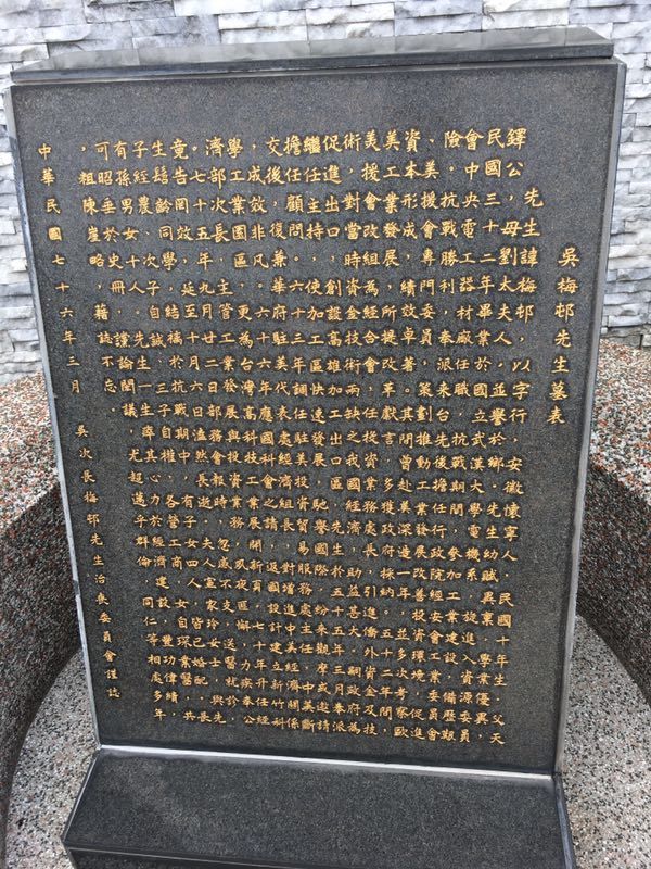 2018年11月25日,中国国民党在台湾中期选举大获全胜之时,日本吴氏文化交流会会长吴恩宗长,与日本吴氏文化交流会副会长须能朋子(吴朋子)宗嫂,来到台湾基隆,在金宝山安乐园,吴恩宗长参观了原中华民国经济部次长吴梅村先生的墓园。吴恩宗长介绍,吴梅村先生的墓园在邓丽君墓园的正对面,吴梅村先生墓园的左邻是清末民初著名学者严复之孙严孝章的墓园。