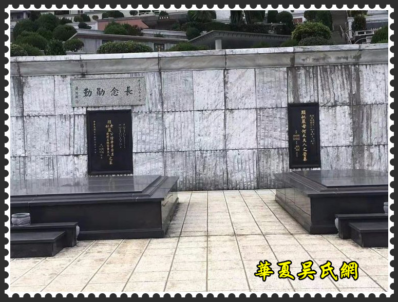 吴梅村先生墓园的左邻是在清末翻译英国生物学家赫胥黎《天演论》的著名学者严复之孙严孝章的墓园。严孝章先生于1942年复旦大学土木工程系毕业,参加驻印远征军。中国抗日战争胜利后,任国民革命军新编第一军新三十师编译室主任。1949年2月,赴台澎筹画台澎防御工事。1952年任陆军总部工程处处长,后入美国兵工学校、哈佛大学高级企业管理研究班进修。1959年退役后,调任行政院国军退除役官兵辅导委员会工程组组长,参与东西横贯公路工程。生前与吴梅村先生是多年的挚友,工作伙伴。两位先生在生前几乎天天见面,在发展经济和台湾的过程中,经常游走世界各国政府,游说友国资助并开发台湾,对中华民国躹躬尽粹。