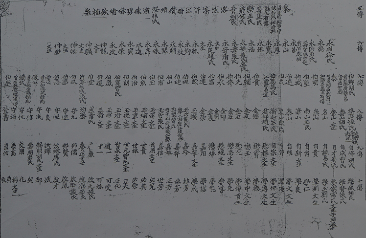(4)吴家沟支:正绍殿学文世永元德长绪光鸿图。(该支道光中合谱)