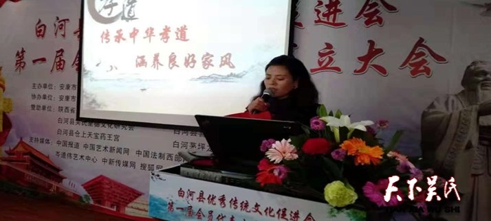 中华传统文化是华夏民族的根,是我们炎黄子孙的魂!中华民族五千年的悠久文明史,是因为有传统文化的熏蒸,每个人如果心灵受到传统文化的洗礼,不仅家庭和谐,幸福美满,而且社会安定,团结友善,国家昌盛,世界和平。近年来,社会风气败坏,人心不古,就是因为我们丢失了传统文化的学习、践行、休养、弘扬、继承和传播。中国离不开传统文化,世界离不开传统文化,因为传统文化象征的是爱国、孝敬、敬业、勤俭、廉正、礼仪、谦让、创新、发展等等精神美德,因此,弘扬和传播,践行传统文化迫在眉梢,刻不容缓。忽如一夜春风来,千树万树梨花开。今天,白河县优秀传统文化促进会的成立,这是给白河县,乃至安康市、陕西省及周边地区带了一个好头,必将功德无量!传统文化博大精深,她不仅仅包括易经之道、周礼之道、孔孟之道、孝道、中医药等,还包括治国之道、社会之道、做人之道,经商之道等等,是各行各业,每一个人的立身之本!传家之本。没有传统文化,就不会有华夏五千年的悠久文明史!就不会有今天的繁荣昌盛!弘扬和践行传统文化人人有责,期望白河县优秀传统文化促进会勇于担当,团结同行,为传统文化的伟大复兴作出新贡献!最后祝愿促进会在会长吴经勇先生的领导下,发扬光大,走出一条辉煌之路。