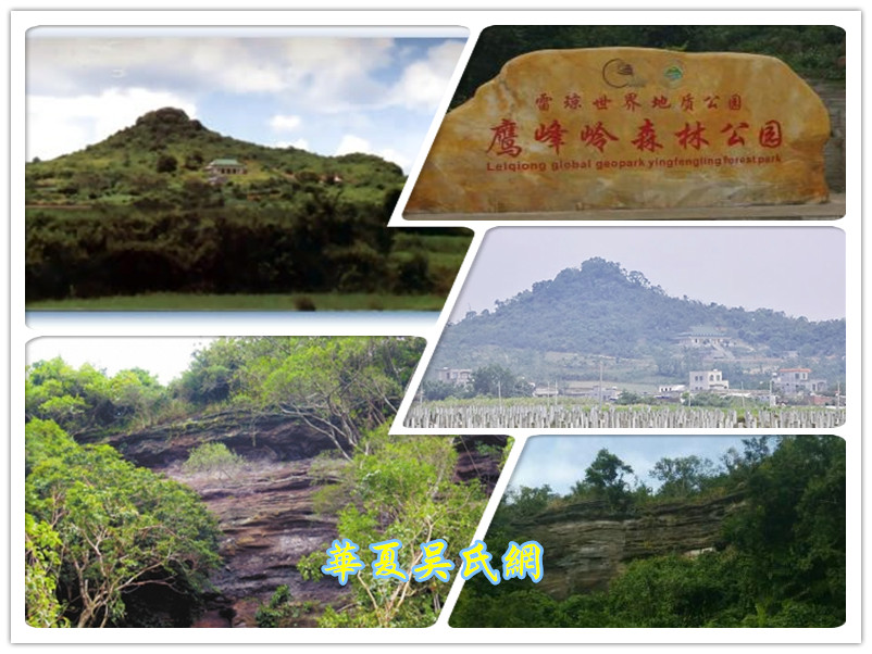 注:鹰峰岭,又称尖山岭,现改属海康县,在徐城镇北40公里处,因峰顶似傲首栖息之雄鹰,故名“鹰峰”。岭高峻,顶有古榕树、古岩洞。古人雅称“鹰峰啄月”,系徐阳八景之一。