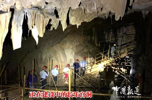 据悉,长乐宫景区到2019年底,整个景区规划全部完成。距东兰县城22公里,离隘洞至长乐二级公路6公里的板登村一座山的半山腰上,有一个溶洞,因为洞内奇特的景观像传说中的宫殿一样,被当地群众称为“长乐宫”。 溶洞内景观。长乐宫溶洞位于长乐镇板登村,溶洞内部自然形成左右两个天然区域,区域里散落着20多个大小溶洞。洞内石笋、石柱、石带、石旗和各类石幔、石瀑布、石盾等多彩多姿。有关专家考察后表示,该溶洞穴母岩形成于约2.8亿年前的海底,而洞内钟乳石是十几万年以来形成的,有的还正在生长发育,极具观赏价值和科学研究价值。地上发育着透明蘑菇状晶体,空中垂悬着神态各异的水晶球、水晶花、水晶草,而那些洁白无瑕通体透亮的玉柱、玉笋则毫无顾忌地疯长着,里面的钟乳石千奇百怪,透明如水晶玻璃。洞里的六色石柱、雪山飞瀑、石屏、三柱擎天等让人感觉像是走进一座艺术殿堂。