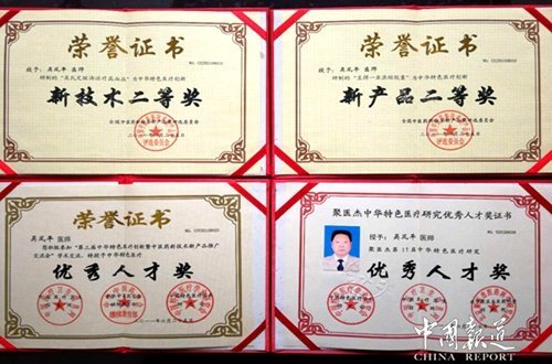 吴风平创办并领导的“安康传统医学研究所”因在科研上取得重大成果,而被评审授予“三星级单位”及“中国优秀职业经理人”称号