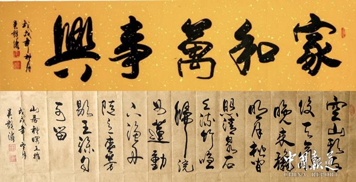 中国报道讯(吴蜀丰)【编者按】吴显海书写的技巧,逆笔、回锋、侧锋、偏锋、虚笔、逆写等谋篇布局,技法出神入化,书若人然,须备筋骨血肉,血浓骨老,筋藏肉莹,加之姿态奇逸,可谓美矣。真乃名家之典范。