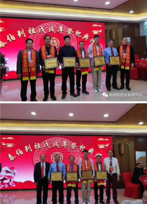 参加典礼活动的嘉宾代表澳门吴氏宗亲总会会长、世界不动产联盟中国澳门分会创会会长吴利勋、大潮汕吴氏宗亲总会会长吴汉龙、两陆吴文化交流中心会会长吴远林及南阳吴氏文化研究会会长吴雷分别发言致词。