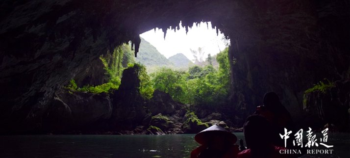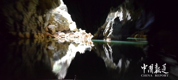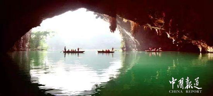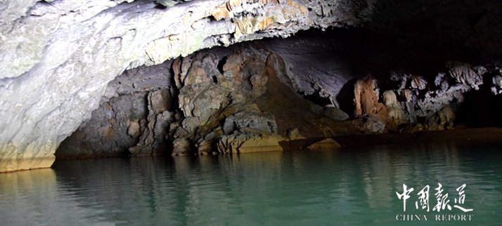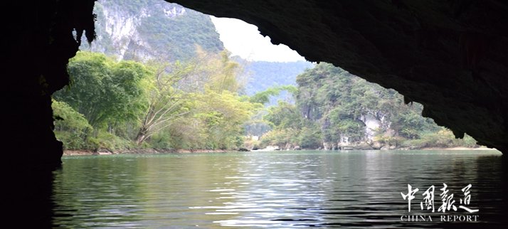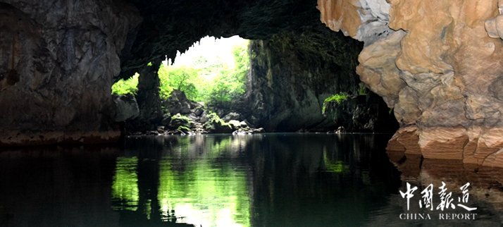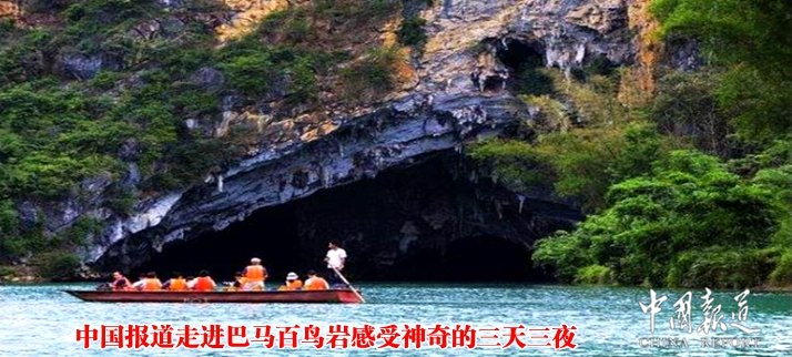 中国报道讯(吴蜀丰 广西巴马报道 )【编者按】百鸟岩,又名水波天窗、延寿洞,龙虎洞。位于广西巴马瑶族自治县甲篆乡烈屯西北面的漠斋山下,该洞是个独特的地下河溶洞,是大自然几亿年来的“杰作”。百鸟岩的成因主要是在地下河水对漠斋山不断的溶蚀、浸蚀、崩塌的漫长过程中扩大而形成。因洞内燕子栖集,蝙蝠掠飞,又名百鸟洞。