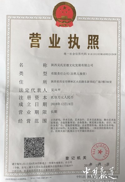 中国报道讯(吴蜀丰陕西报道 特约采编 风平)陕西吴氏至德文化发展有限公司于近日在西安注册成立,公司主要从事文化研究,学术交流,艺术创作,艺术交流策划,舞台艺术造型策划,企业形象策划,会务服务,展览展示服务,市场营销策划,企业管理咨询,商务信息咨询,礼仪服务,摄影服务等文化传播和发展工作。公司将积极配合、协作陕西省吴氏宗亲联谊会开展各项工作,在公司董事长吴风平先生的带领下,充分利用陕西省资源优势,联络世界吴氏宗亲,为世界至德文化做好带头人。