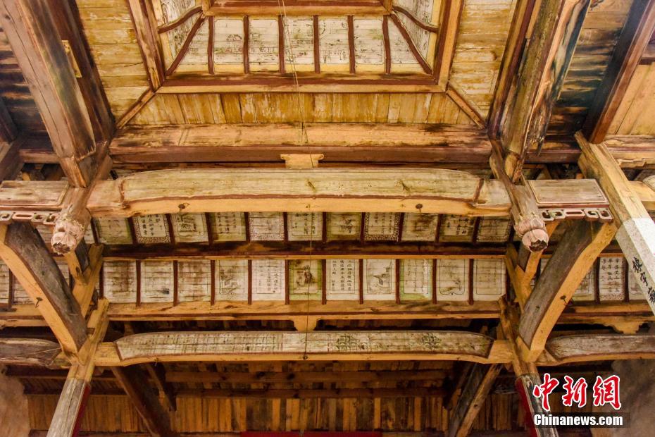 12月1日,江西省遂川县禾源镇三溪村一吴氏祠堂,尚存的古字画,清晰可见,不失其精美。中新社发 肖远泮 摄 图片来源:CNSPHOTO