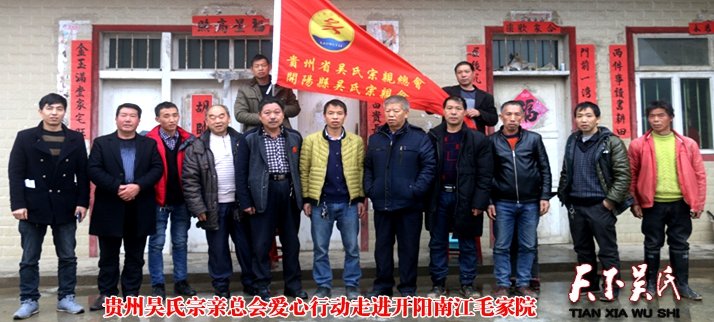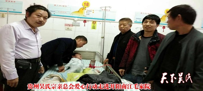 贵州省吴氏宗亲总会开阳县吴氏分会吴天友悉知这个情况后,立即上报了省总会,经过讨论,由吴天友,吴肇俊,吴文杰,吴文勇,吴天立等马上成立了爱心小组,将爱心倡议书面向各地吴氏宗亲会,希望一方有难,八方支援的团队精神再一次的发扬光大,让祖国的花朵不再枯萎,早日迎来朝霞的曙光。