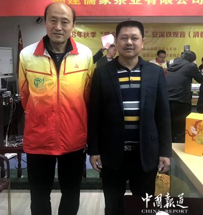 2017年8月份,在福州举办的中华吴氏企业联合会周年庆典大会上,我带过去的“金银铜”陈香型茶王,用晋溪源矿泉水泡出来让全场几百位宗亲们品尝,以茶代酒,并上台推介陈年老铁的功效。让安溪民间斗茶交流协会的旗帜闪耀亮相!