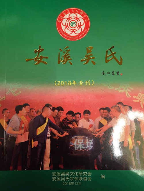 二是参加12月底省吴氏委员会年会及《福建姓氏志——吴氏》《中华吴文化大典》编纂交流活动。我县响应省吴氏委员会去年布置的任务,于2018年9月份之前,按时上交《福建省姓氏志——吴氏(安溪篇)》的送审稿,共200多页,并获得省吴氏委员会的肯定,吴建霖秘书长获邀在2018年底省会举办的会议上进行报告交流。安溪县吴文化研究会在会上获得2018年“先进集体”表彰。