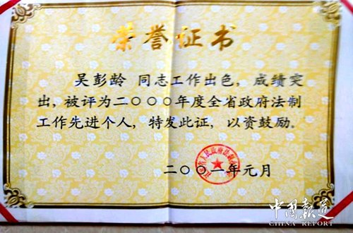 在自己的一生中,吴彭龄获得了包括省法制工作先进个人、省律师培训授课专家师资库成员、市法制教育先进个人、市宪法宣传一等奖、市法学论文一等奖、市十佳少先队志愿辅导员(之一)等等大量荣誉,其中他尤其珍惜的是大量学校、部队、企业给他的各种聘书和“无锡市十佳少先队志愿辅导员”的荣誉。他为自己能够为建设法治中国作出一点奉献感到欣慰。他对笔者说,中国在进步,法治的阳光在闪耀,我作为当今时代的一名法律工作者,能够生活在这个时代,能够为这个伟大的事业作出一点贡献是十分幸运的。
