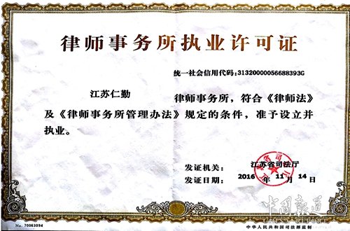 常年法律顾问吴彭龄 执业证号码:13202199210937510 江苏仁勤律师事务所