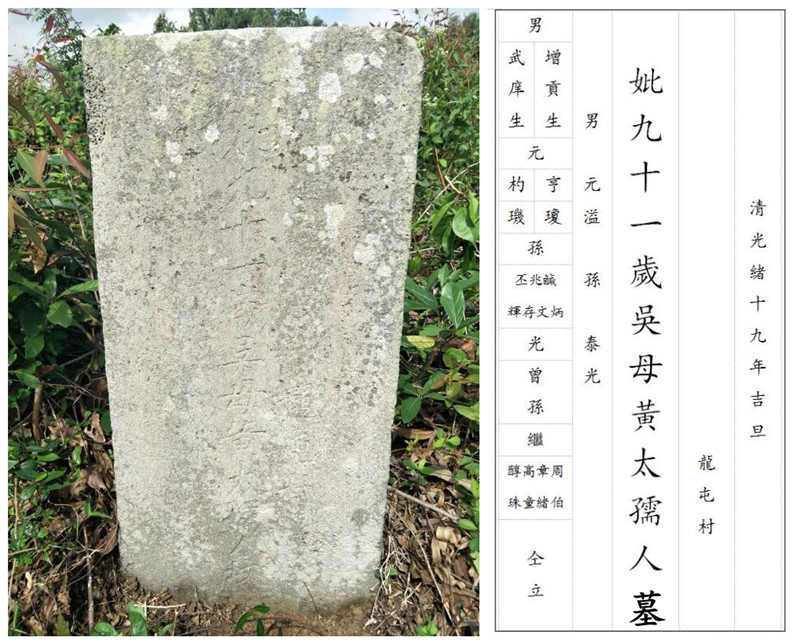 2019年1月13日,吴保泰儿子从龙塘带回消息,有人在龙塘镇博赊港附近发现龙屯吴氏一座祖坟。大家这一听,均感到诧异,之前只知道龙塘头塱有12世启公郑婆墓,从未听说还有祖坟还在那边。晚上,经查阅旧族谱,启公房下有“星炜,原名星炯,仪南公长子,字芳圃,监生,娶五里附生翁继谦之孙女监生钟杰之长女,出男一昭清,妾陈氏,男二昭玺昭威,女二长适海安黄家,次适石綢陈家公,寿五十四岁卒于同治元年五月初九日,葬县东禄五山近龙塘市,与龙屯村相去三十里妾,陈氏葬禄财 。”会不会是“星炜公墓”?
