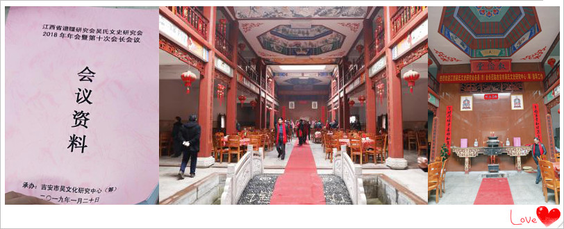 2019年1月20日,虽是“大寒”节气,四九寒天,但气清和畅的惠风让人感觉春意已至。在这个兼收并蓄的腊月,江西吴氏文史研究会在以“三千进士冠华夏,文章节义堆花香”而著称的吉安召开了“新时代谱牒文化的传承与把爱家和爱国统一起来”为主题的。2018年年会暨第十次会长会议。出席会议的有江西吴氏文史研究会的顾问吴宇飞、吴俊伯、吴萍如、吴方平、吴明保。机关各部门人员、各县(市)吴文化研究中心的会长、吉安地区吴氏村落代表等逾一百五十人。