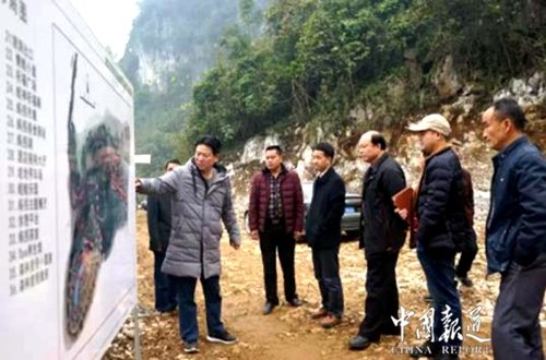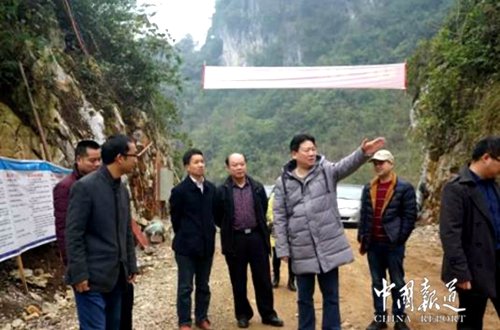 中国报道讯(吴蜀丰特约通讯员覃源 黄文 黄丽桃】日前,中共东兰县委常委、副县长程伟田、东兰县旅发委主任韦正勇等一行到东兰县长乐镇长乐宫旅游名胜风景区项目现场,对洞外施工、安全生产、施工进度等工作进行深入调研。