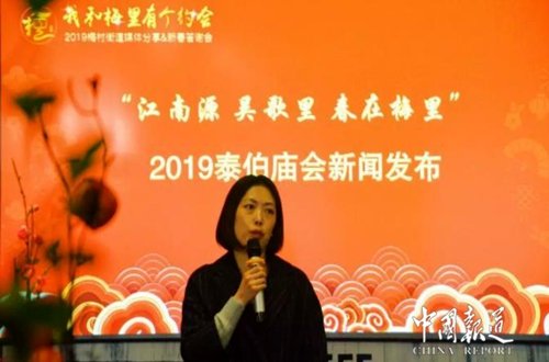 “江南源 吴歌里 春在梅里”2019泰伯庙会新闻发布介绍,梅村素有“江南第一古镇”的美誉,是吴文化的发祥地。每年正月初九,江南吴地人民都要为纪念祖先泰伯而举办盛大的“泰伯庙会”。自2003年起,梅村人民在传统泰伯庙会的基础上,融现代手法于传统习俗,每年举办一届泰伯文化节,持续成功举办了第十届泰伯文化节。