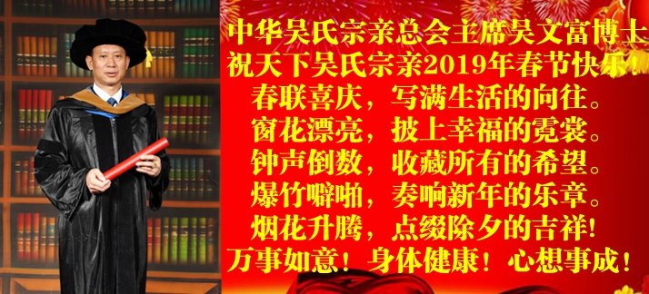 恭祝中华吴氏宗亲阖家欢乐,身体健康,万事胜意,新春快乐!