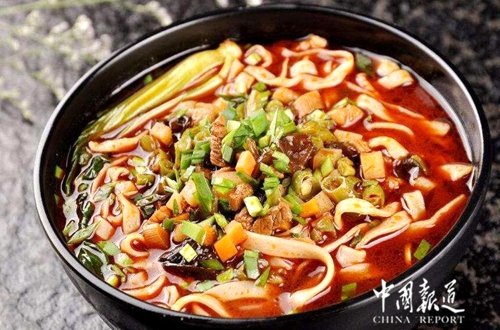 这种独树一帜的吃法,起源于3000多年前的先周时期,植根于历史的深处,承载着巨大的教化功能。从古到今,围绕着岐山臊子面这一美食现象,流传着许多美好的传说和故事。传说周文王在渭水之滨射杀了一条大蛟龙,仁慈的周文王要与民同乐。为了让更多的人吃到这种美味,他让属下把蛟龙熬成一大锅肉汤,用此汤浇面,只吃面不喝汤,剩汤要倒入锅中继续加热,循环使用,以便更广泛地与大家分享。结果众人皆大欢喜,更加拥戴文王。据此,臊子面又有一个别名叫“蛟汤面”。这种说法最为流行,也和文王一贯推行的仁政德治是相吻合的。另一种颇具文化韵味的名称叫“孝子面”:说是老人们特别爱吃臊子面,那些孝顺老人的儿女便尽量满足老人的心愿,每逢重要节日以及待客时,便精心做好臊子面以孝敬老人。甚至一些早已和父母亲分家另立门户的青壮年,在吃臊子面时也要把年迈的父母请来犒劳一顿。所以每一次臊子面宴,都是一次温暖的老人节,它把在现实生活中往往被人掰成两半的“孝”字,一次次地缝合起来,使得以忠孝为核心的中国传统文化得以不断延续,同时也一次次地构建着和谐的生活画面,呈现出升平与欢乐的景象。有一种教化存在于饮食习惯之中,岐山臊子面的吃法便属于这种情况。其中对周礼文化的传承,让人刻骨铭心。(该文曽发表于《宝鸡日报》)