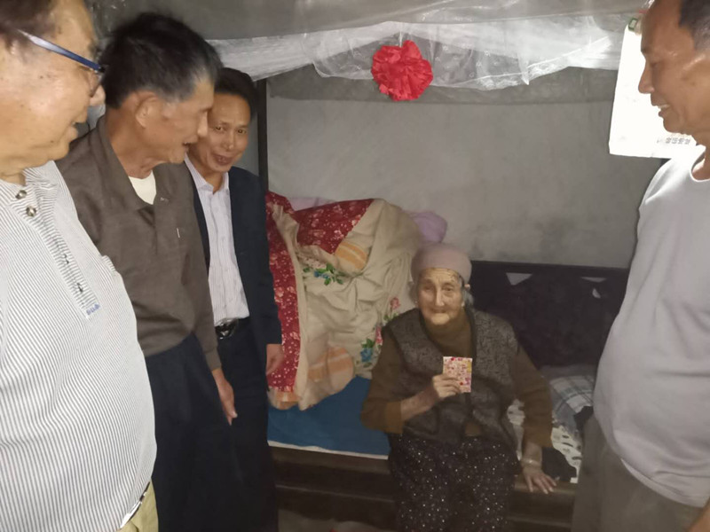 随后由该村村长吴永柱带领吴清文、吴本贤等青年骨干先后上门看望慰问了100岁老人罗王芳、98岁老人罗龙英、98岁吴永生老人、92岁老人刘文英等四名老寿星进行慰问派发红包,送上新春的温暖和节日的祝福。
