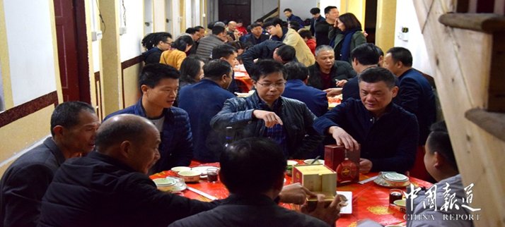 新年,正月初六茶话会上,无所谓高风懿范,游子相聚一堂,您只想把自己的根,与茶树和乡音一起,种进山的心里,您对家乡的熟稔和愛恋以及感恩和回报,乡音乡情乡的愛,连着血脉,连着骨骼,游子们的爱,播种在世界异地他乡,墩坂闯世界,知天下三分事。