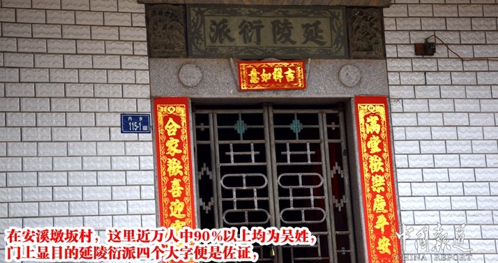 在安溪墩坂村,这里近万人中90%以上均为吴姓,门上显目的延陵衍派四个大字便是佐证,家家户户门牌很显目的二维码成为最全国为数不多的景观,只要你扫下二维码你就会有很多收获。几乎家家户户贴春联,挂大红灯笼,屋顶悬桂空飘条幅,放烟花放鞭炮,在海内外、在港澳台及他乡的游子都回家与家人团聚过年更显“常回家看看”的亲情纽带。