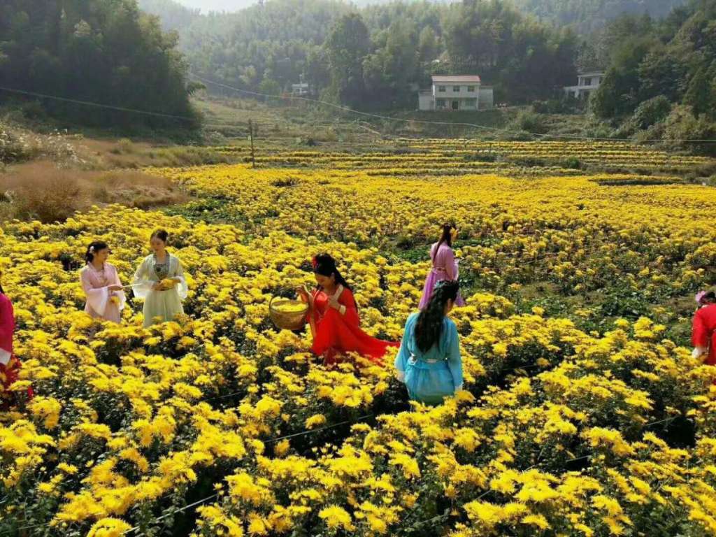 目前,康乐福生态农业园贵妃凰菊基地山林田土共流转服务面积达4029亩,年产鲜菊花稳定在200吨左右,年创产值二千万元,已达成集科研、特色茶生产、加工、销售,茶文化推广、乡村生态旅游,现代农业开发于一体的综合型基地。